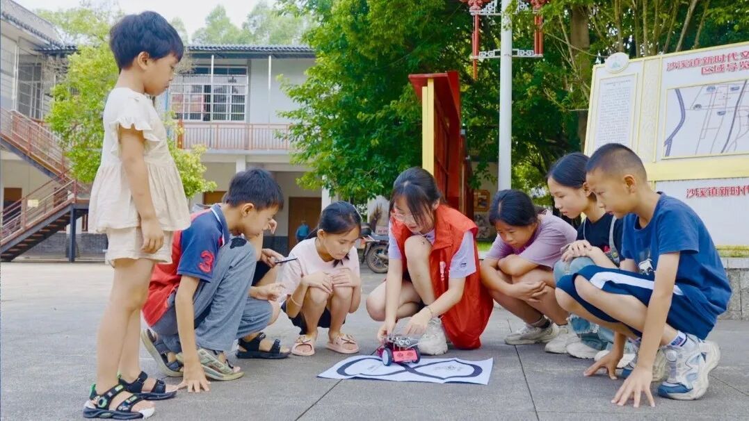 在溪流蜿蜒的绿美乡村,创新实验室助青科普团让孩子们感受到了前沿科技的魅力。“编程像玩魔术!”在Scratch盒子编程公益课上,孩子们化身“小小发明家”,亲手操控电路板与电子元件,学习数字信号、循环分支等编程基础知识。红外遥控小车、巡线机器人、地震预警仪……一个个充满趣味的创新案例,通过生动有趣的课程走进孩子们的生活,将科技的种子播撒进他们的心田。